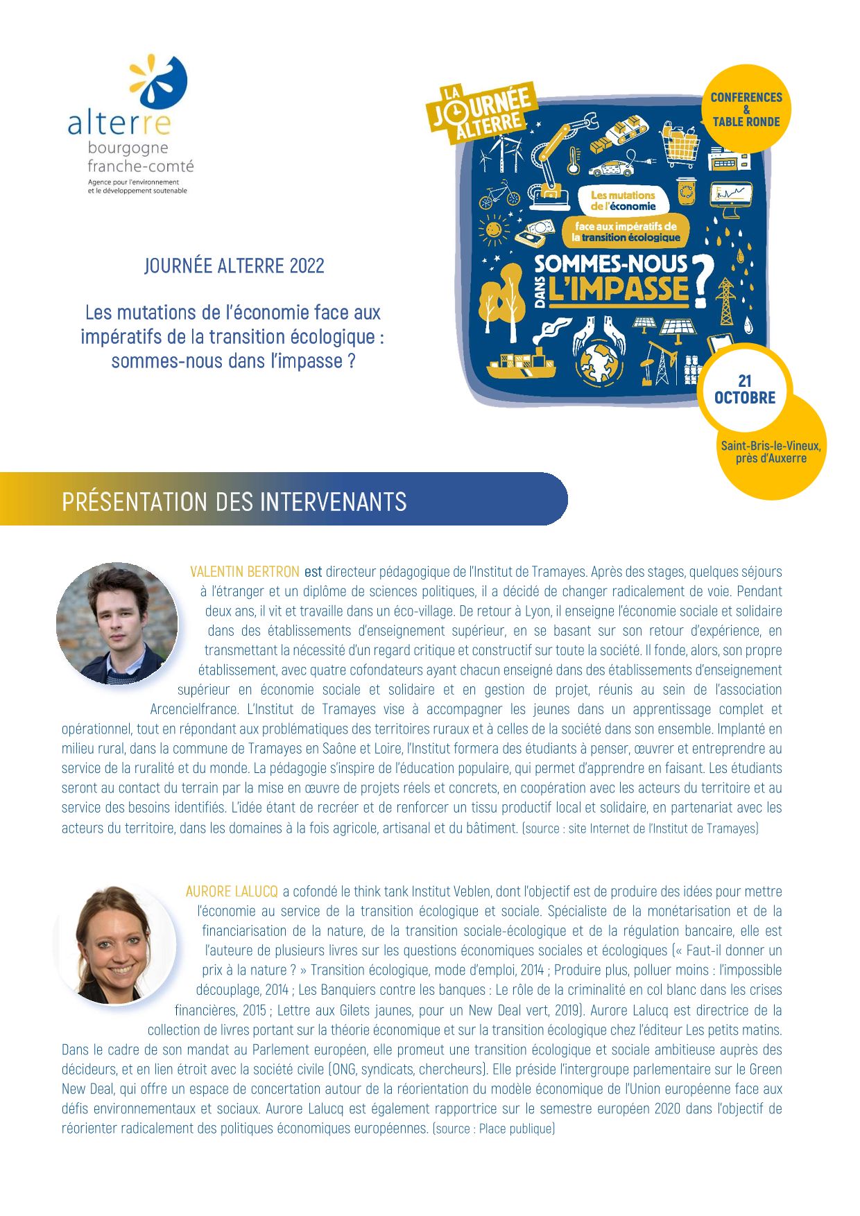 La Journée Alterre 2022 "Les mutations de l’économie face aux impératifs de la transition"
