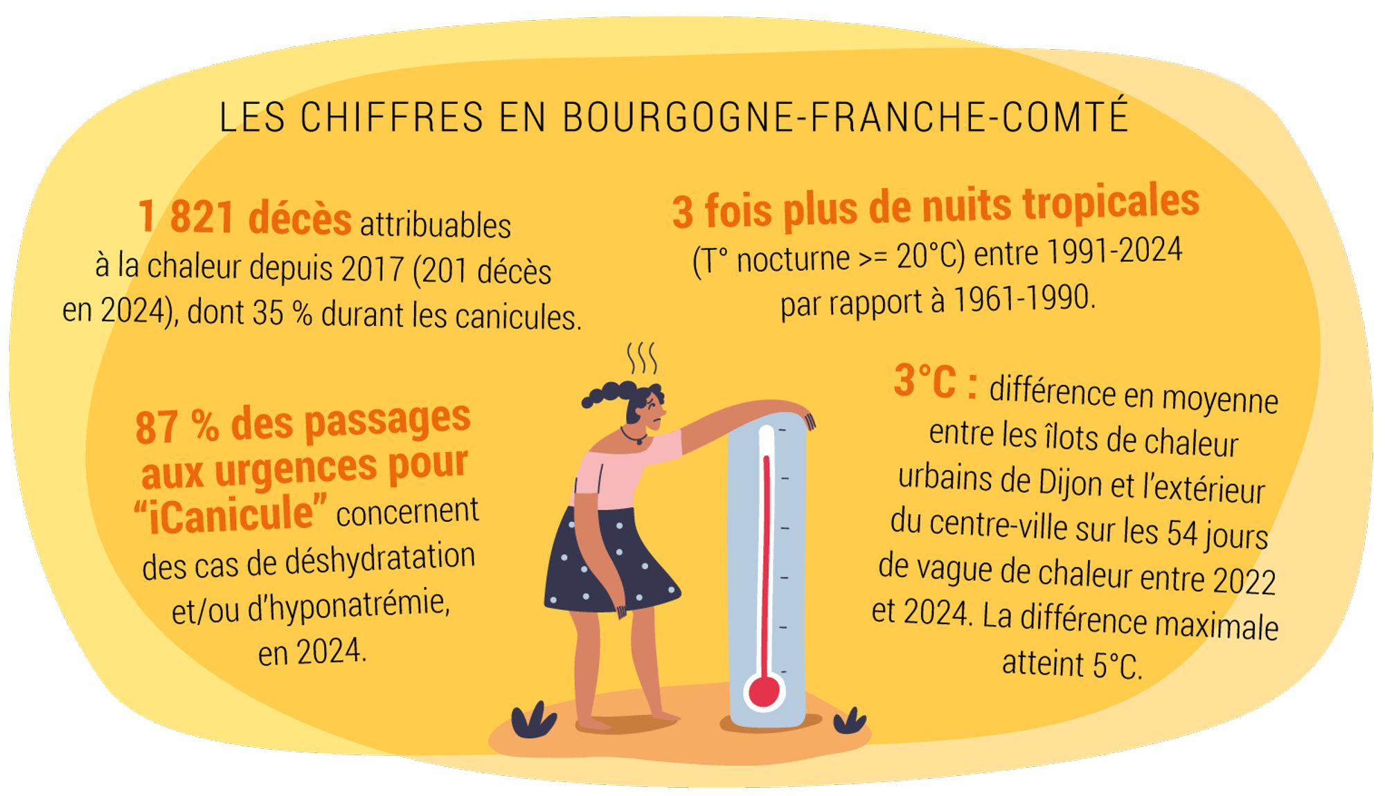 Cette infographie a été réalisée à partir des chiffres clés parus dans Repères flash 94 "Le temps d’agir : les chiffres du changement climatique en Bourgogne-Franche-Comté".