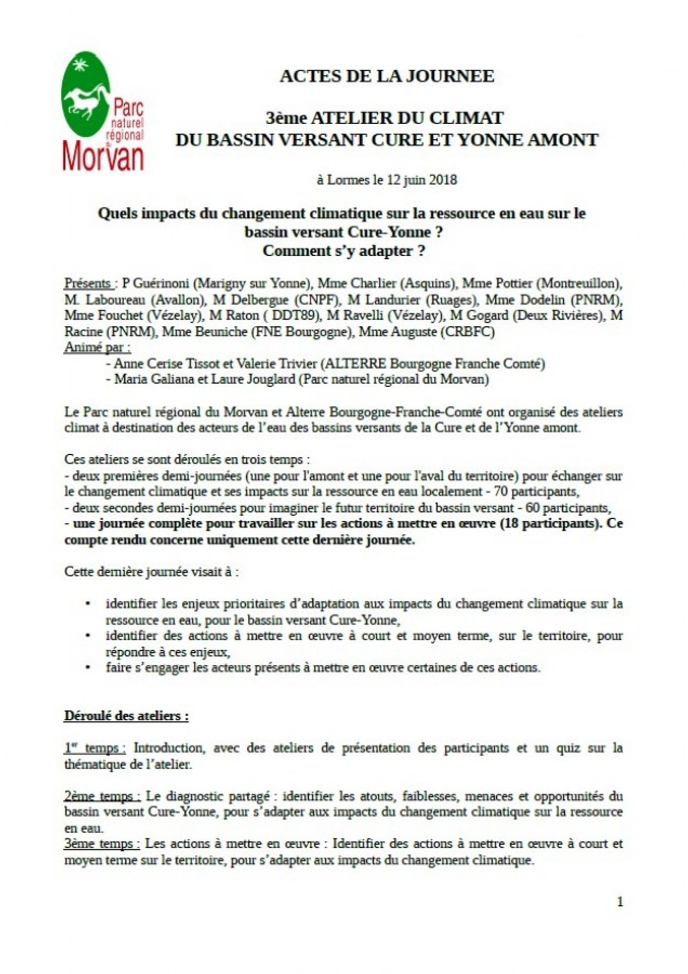 - Les Ateliers du climat du bassin versant Cure et Yonne Amont
