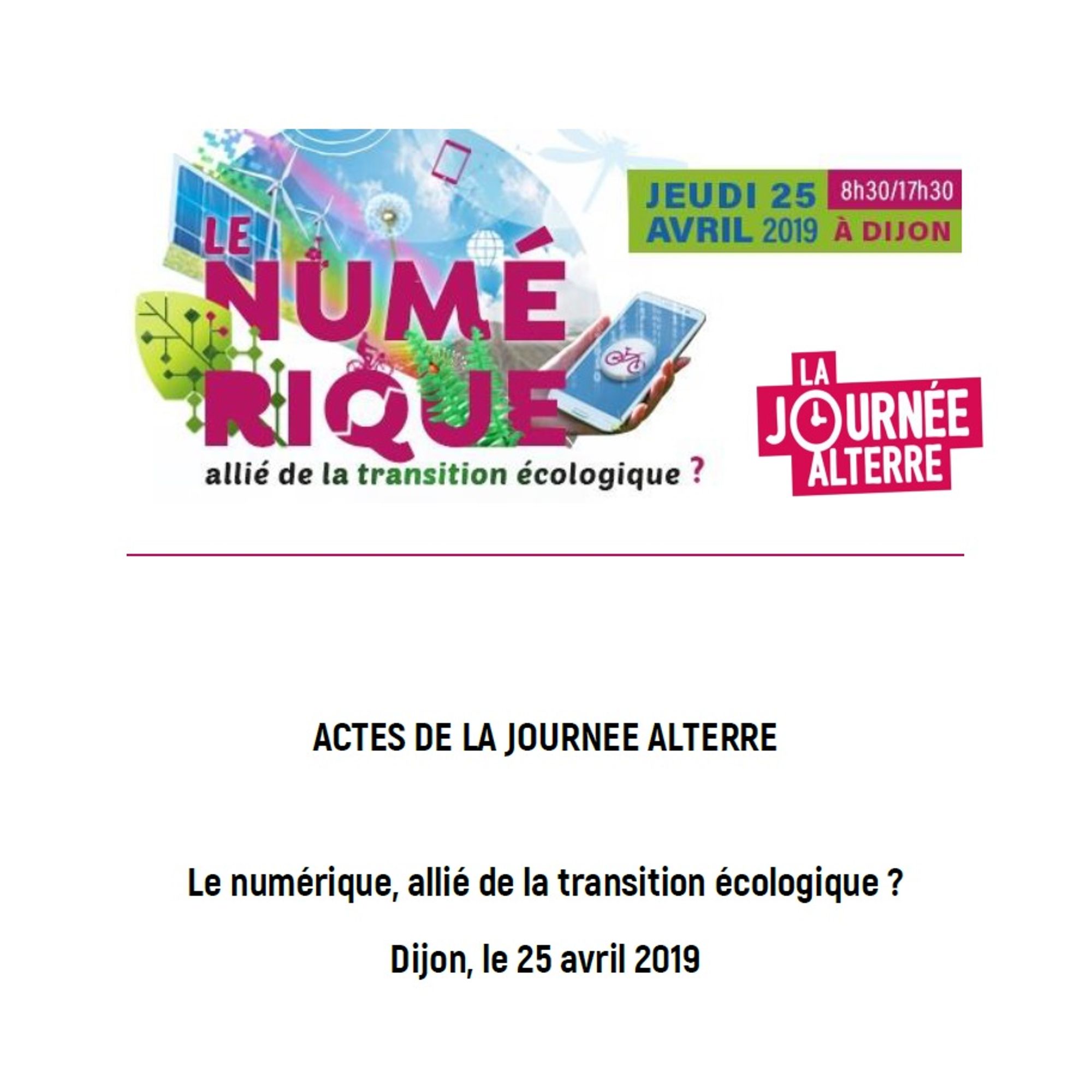 - Actes de la Journée Alterre du 25 avril 2019