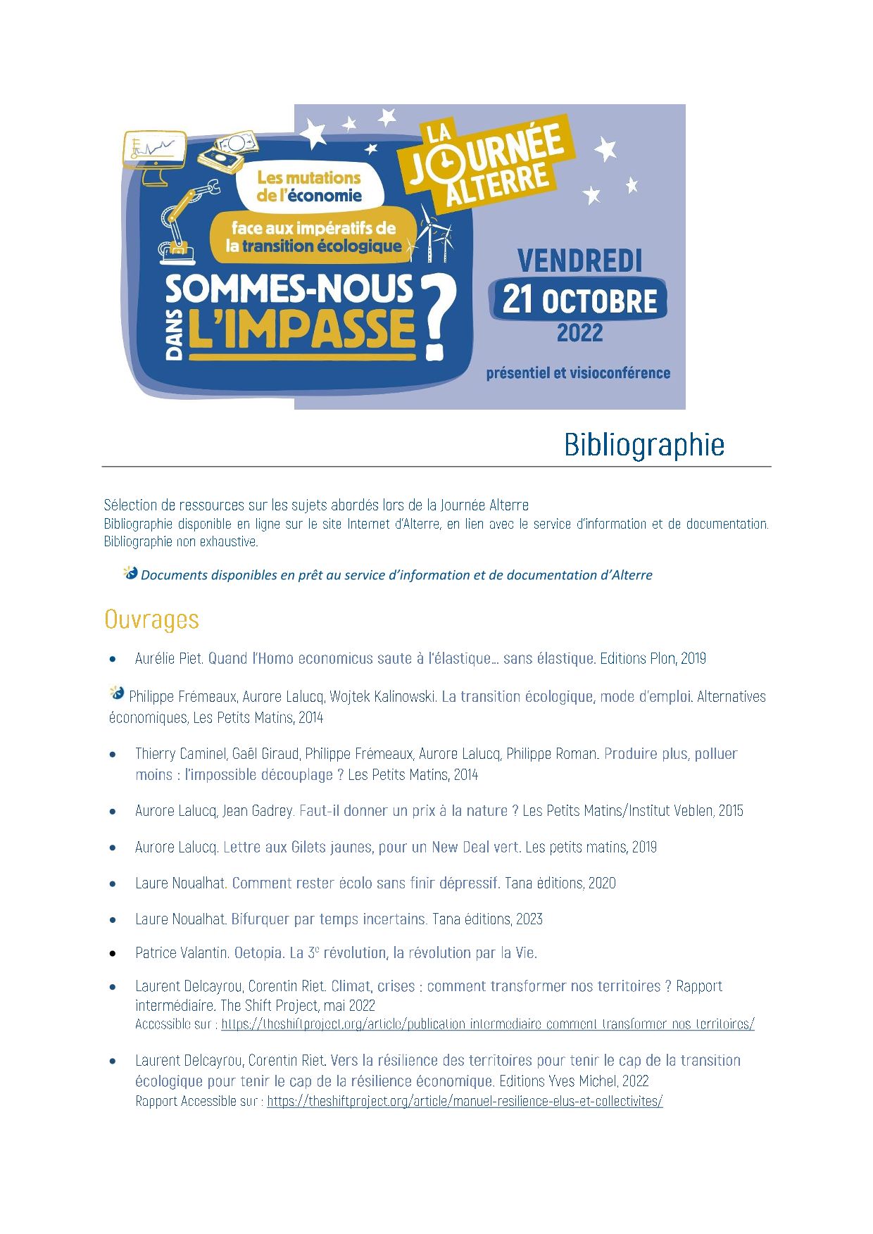 La Journée Alterre 2022 "Les mutations de l’économie face aux impératifs de la transition"