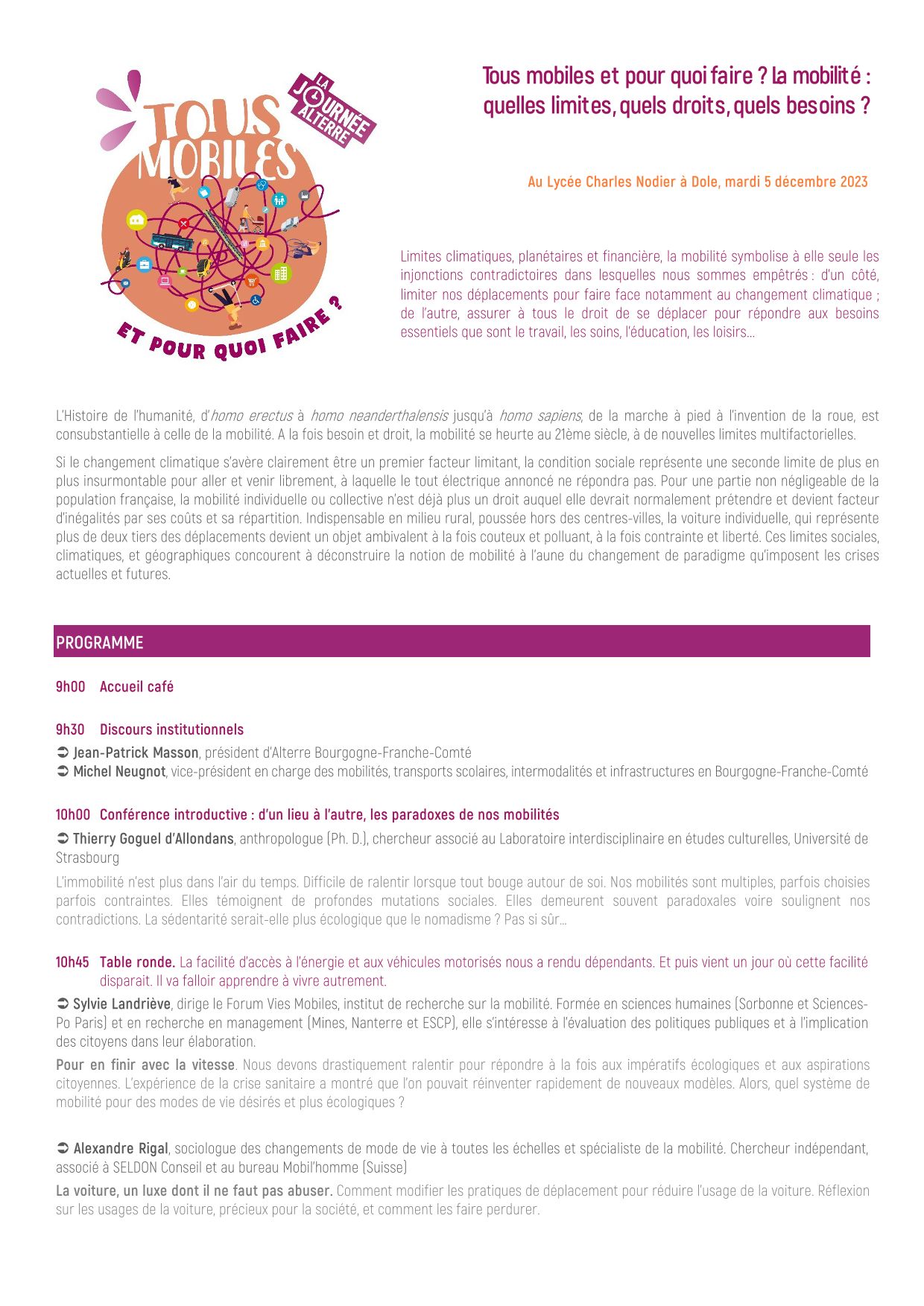La Journée Alterre 2023 "Tous mobiles, et pour quoi faire ?"