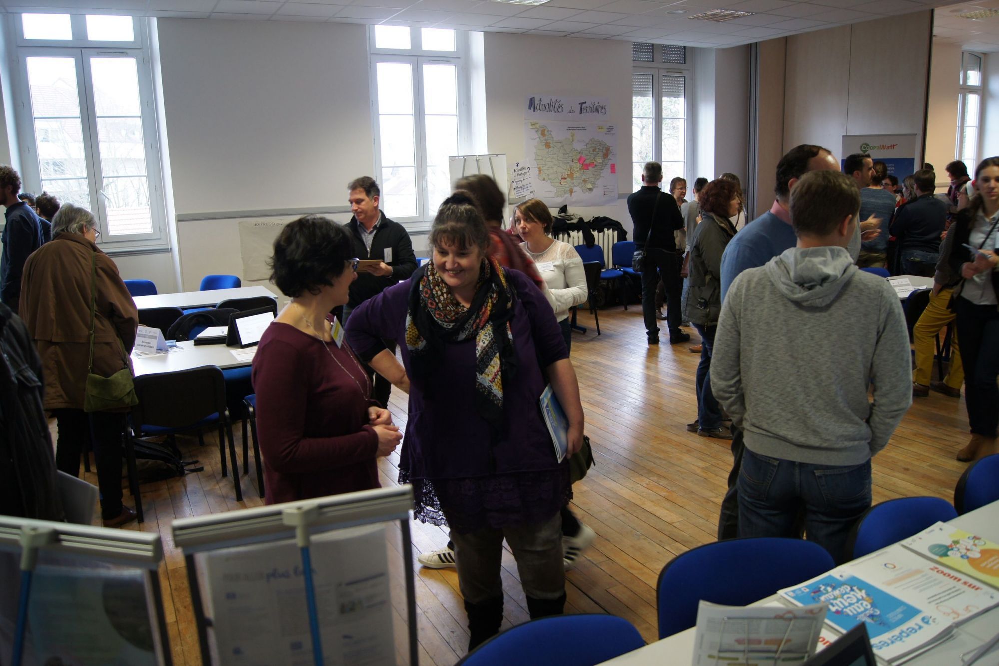 ATMO BFC et Alterre ont tenu un stand mardi 18 décembre 2018 à la journée régionale du Réseau Transition Energétique organisée à Dijon par la Région, l’ADEME et la DREAL. Un Market Place a permis aux territoires engagés dans la transition énergétique de s’informer sur des sujets utiles à leurs projets : énergies renouvelables, financement participatif, service public de l’efficacité énergétique, mobilité, économie sociale et solidaire, qualité de l’air, pour ne citer que ceux-là. ATMO BFC et Alterre ont pu présenter aux visiteurs les données, outils et ressources à leur disposition. Une démonstration sur écran tactile leur a permis de découvrir les nouvelles fiches « Profil de territoires » disponibles à partir du site www.oreca-bfc.fr Rubrique Mon territoire.