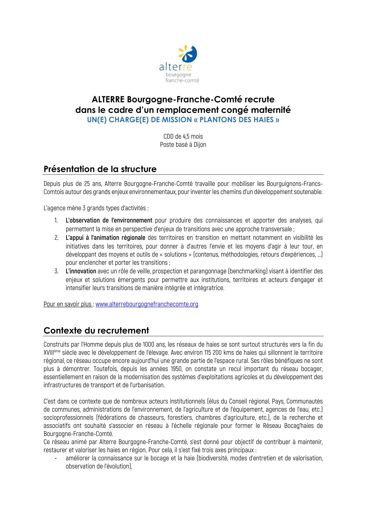 Alterre recherche un.e « chargé.e de mission Plantons des haies »